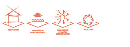 Isolant intérieur des cloisons séparatives pour absorber les bruits aériens et bruits de choc. Pose dans une ossature bois ou ossature métallique de cloison. La semi-rigidité assure une pose aisée et évite le tassement.